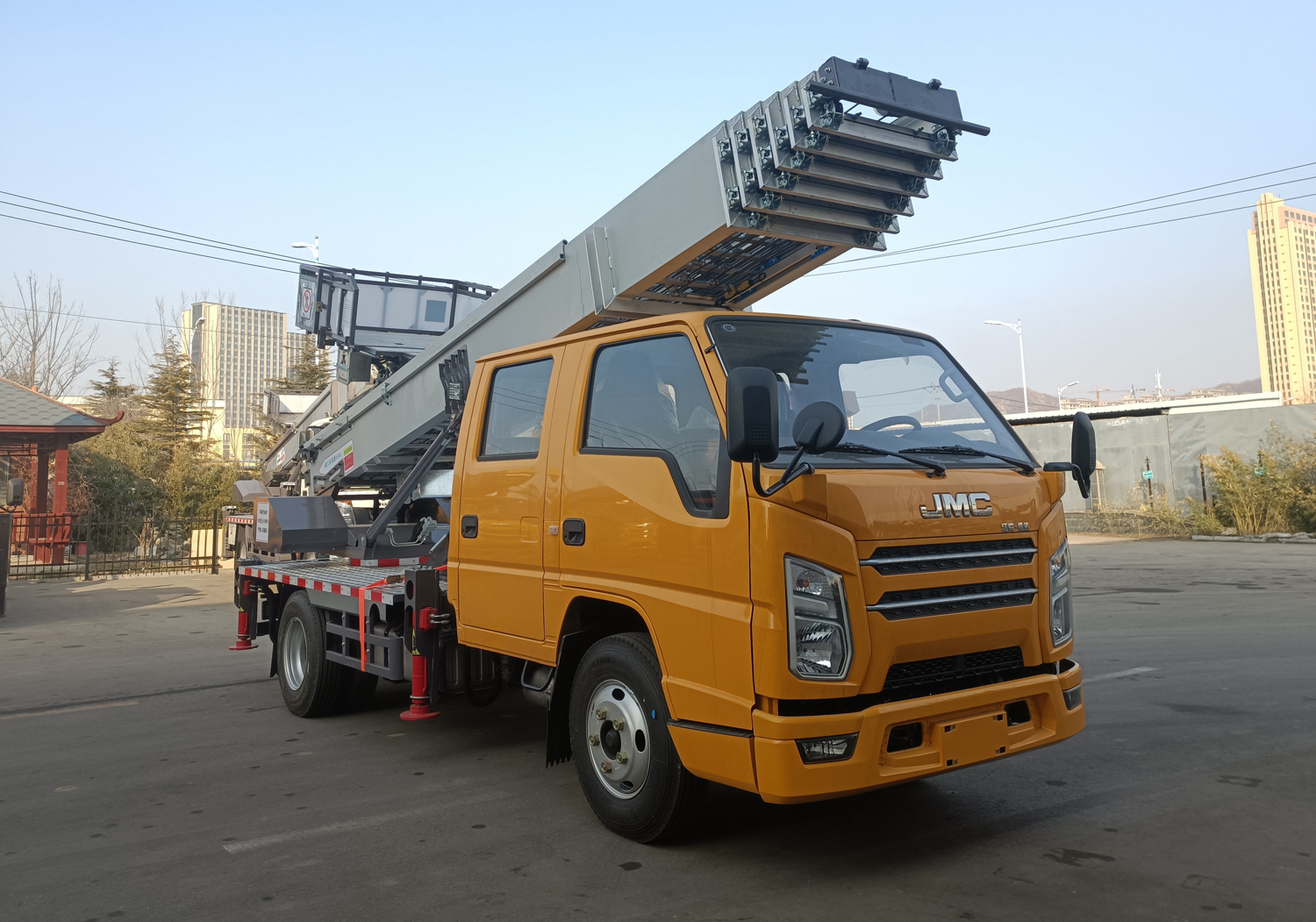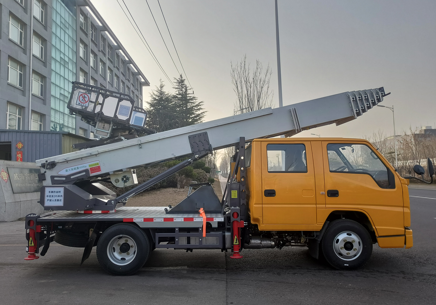 高丽亚云梯车又叫云梯搬运车、高空运输车、高空作业车、云梯搬家车。该车主要用于工程租赁、幕墙施工、楼顶防水作业、太阳能安装,广告高炮、电力维修、空调安装、搬家公司、水泥沙石搬运、船舶维护、路桥修护等。作业范围可达28米高相当于10层楼,承载货物重量400公斤。