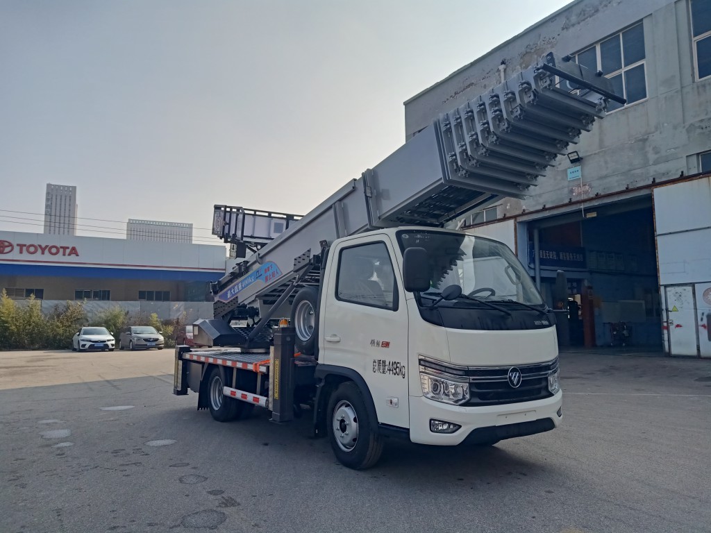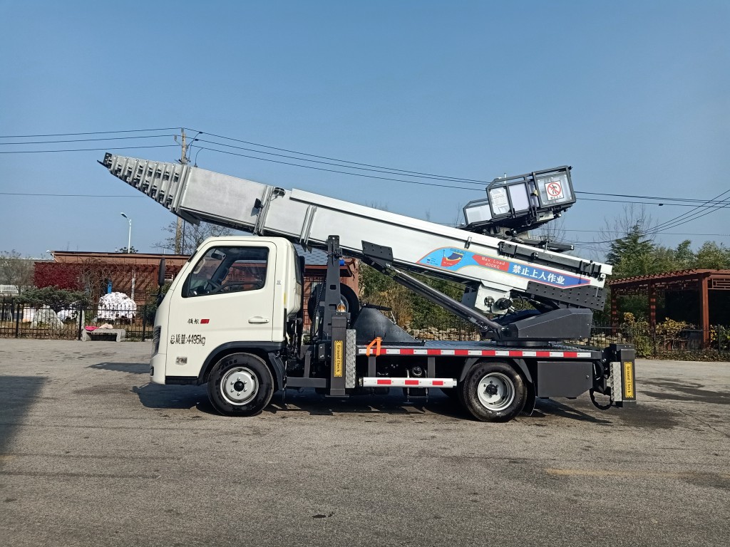 云梯车又叫云梯搬运车、高空运输车、高空作业车、云梯搬家车。该车主要用于工程租赁、装修材料搬运上楼、建筑垃圾搬运下楼、楼顶防水作业、太阳能安装、搬家公司、水泥沙石搬运等。作业范围可达40米高相当于13层楼,最大承载货物重量400公斤。