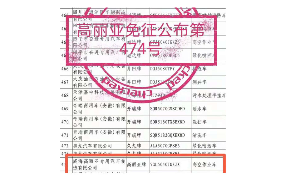 高丽亚云梯车就在此公告中,所以享受合法的政策优惠。